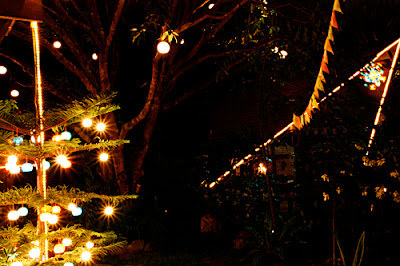 One of the live evergreens in the farmhouse was decorated as one of the Christmas trees. There were fabric buntings too, and Christmas star lanterns (parol) at each of the structures. Here, you can see the lantern on the right-most -- that's the chapel. There's another at the guest house, and two more at the main house.